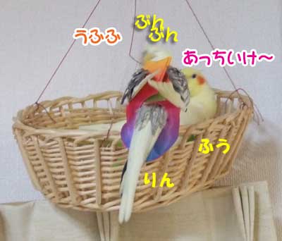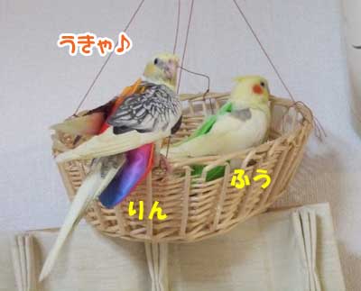 2007.5.9生まれのシナモンヘビーパイドの男の子と 2007.9.20生まれのPFパールパイドの女の子。 ふうとりん、2羽のオカメインコの日記。 そして、2008.5サザナミインコのはじめが仲間入り。