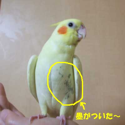 娘が習字の墨で遊んでいるところに飛んで行っちゃったんです。