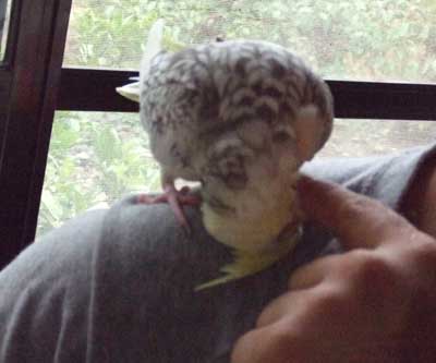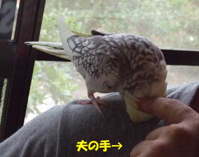 肩にとまっているのに何もしないと頭突きをしてアピールします(笑)