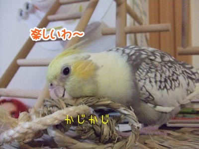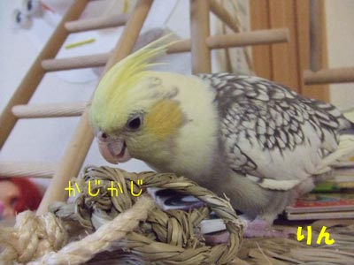 2007.5.9生まれのシナモンヘビーパイドの男の子と 2007.9.20生まれのPFパールパイドの女の子。 ふうとりん、2羽のオカメインコの日記。 そして、2008.5サザナミインコのはじめが仲間入り。