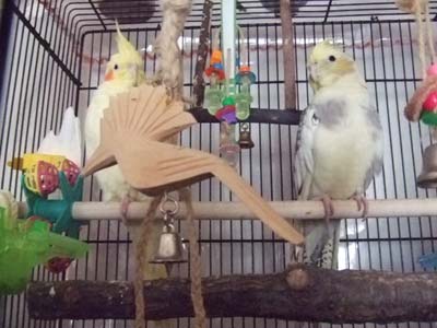 2007.5.9生まれのシナモンヘビーパイドの男の子と 2007.9.20生まれのPFパールパイドの女の子。 ふうとりん、2羽のオカメインコの日記。 そして、2008.5サザナミインコのはじめが仲間入り。